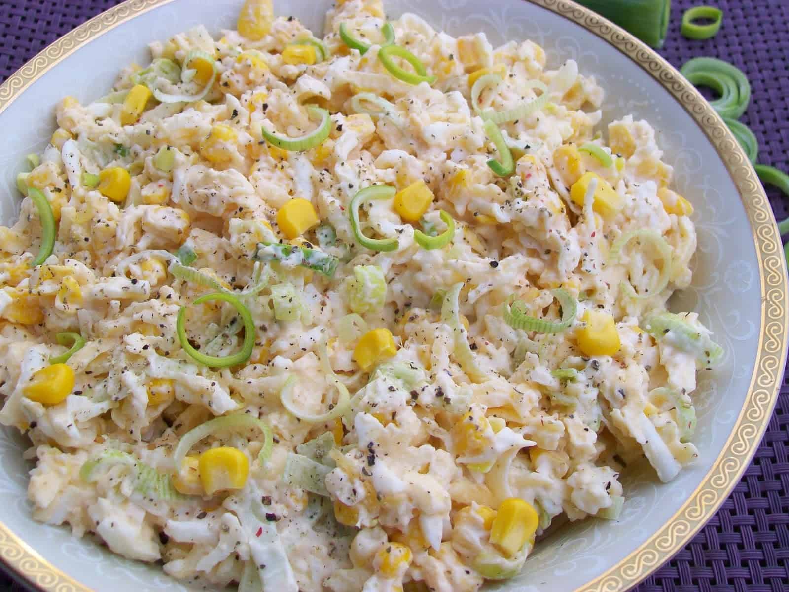 Pyszna sałatka, która świetnie sprawdzi się w roli imprezowej przekąski na Sylwestra. Por dodaje jej takiego fajnego ostrawego smaku :)
