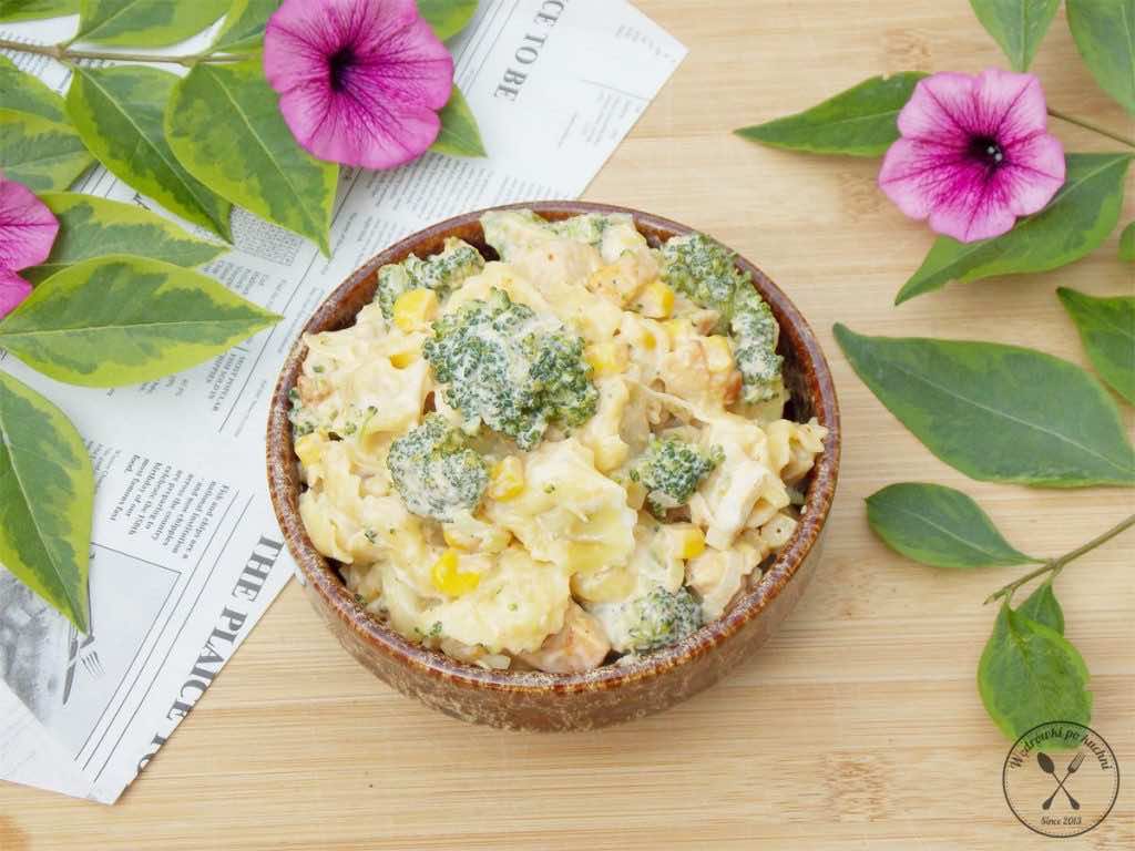 Pyszna sałatka brokułowa z makaronem w wersji ostrej. Nie tylko jest dobra, ale również bardzo sycąca.