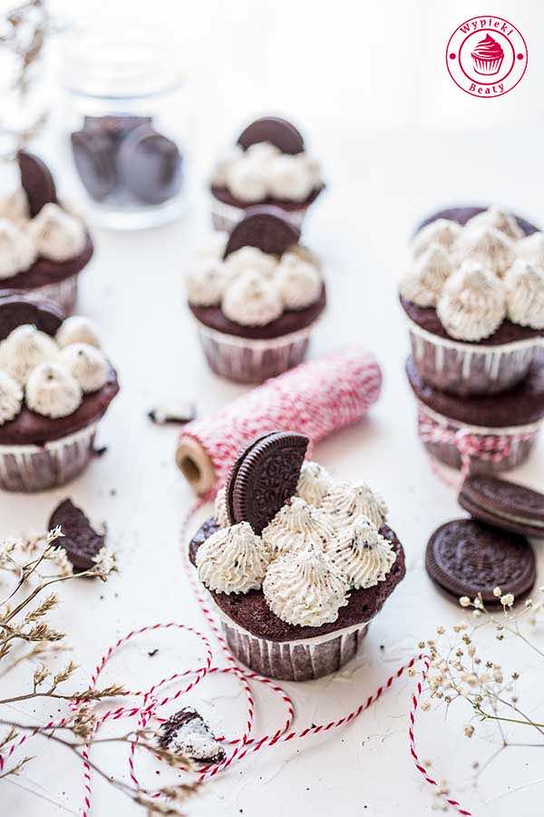 Pyszne, wilgotne czekoladowe babeczki, a do tego rewelacyjny krem z pokruszonymi ciasteczkami – zasmakują wszystkim.