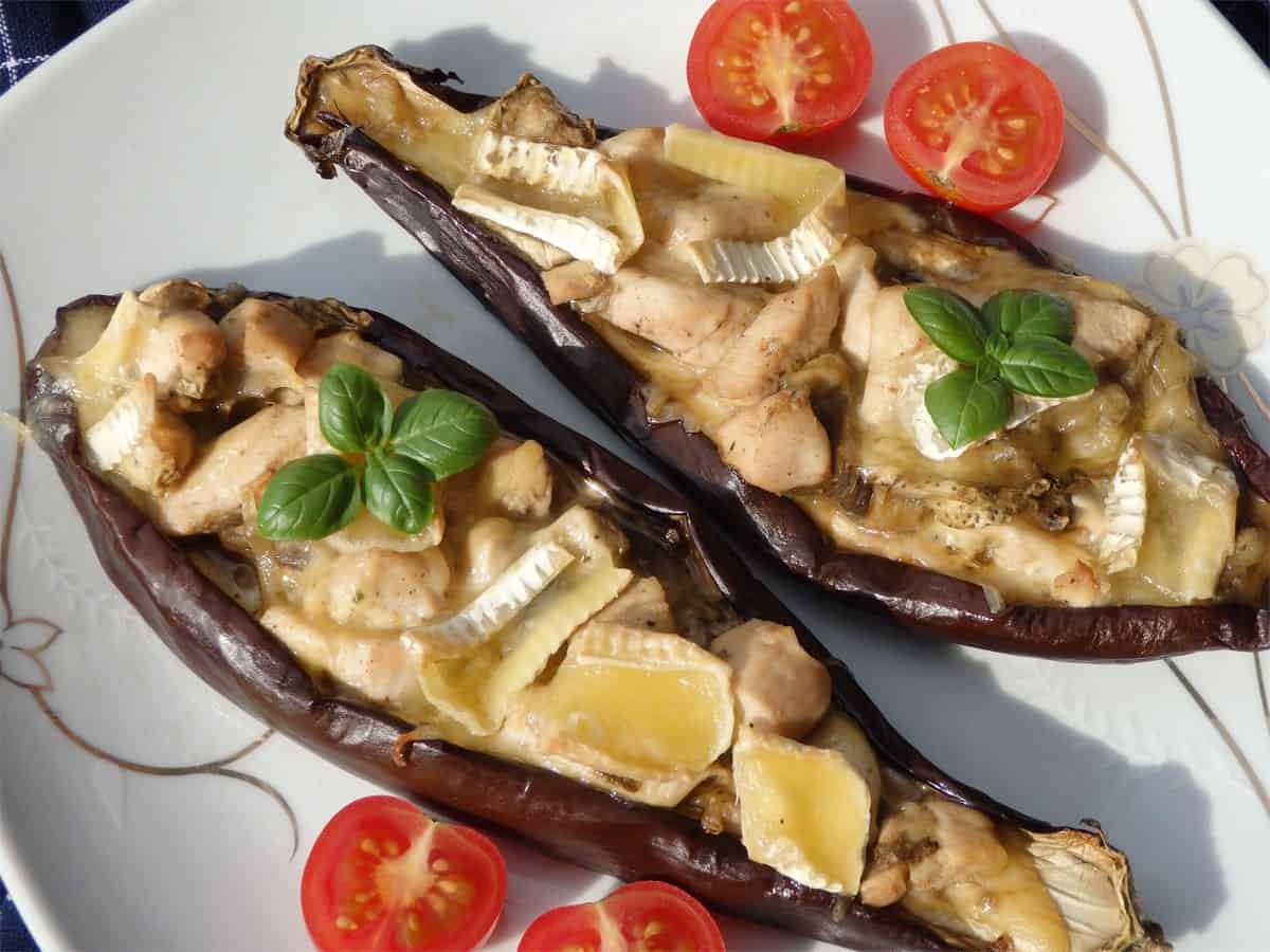 Znowu zawitały u nas bakłażany. Trochę małe sztuki się trafiły ale i tak udało się przygotować coś pysznego. Oczywiście zrobiłam faszerowane. Nadziałam je kurczakiem i serem żółtym a całość dopełnił camembert. Po prostu pychota.