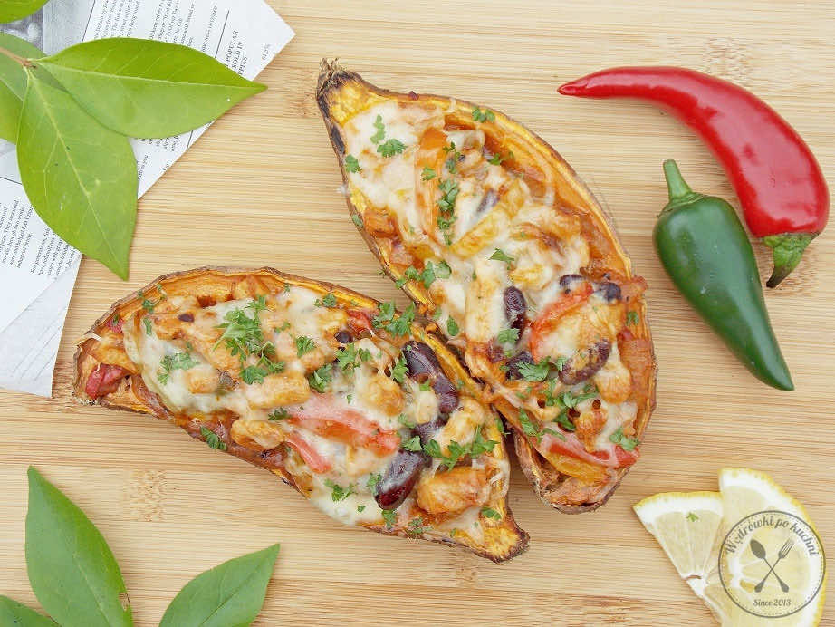Prócz klasycznych fajitas z wołowiny, w menu znajdziemy fajitas z wieprzowiny oraz z kurczaka. Ja postawiłam dziś na kurczaka. Klasyczne placki tortilla, w które zawija się farsz zamieniłam na bataty. Powstało ciekawe danie, którego zaletą jest nie tylko wygląd, ale i smak.