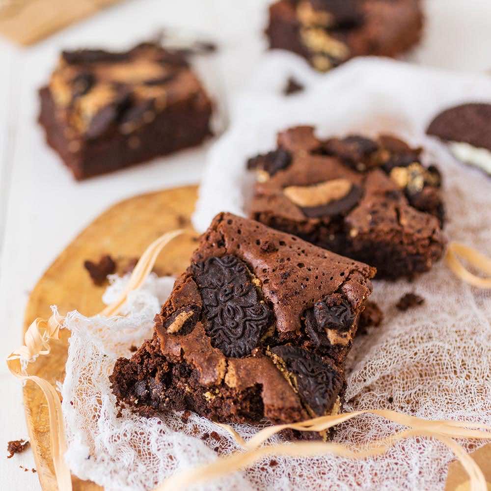 Mocno czekoladowe ciasto brownie, a do tego ciasteczka markizy – idealne połączenie :)