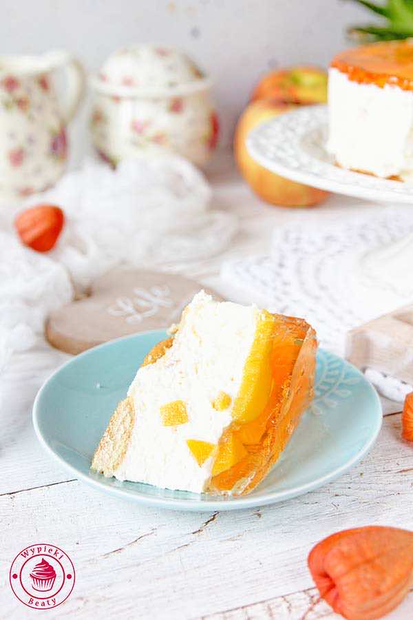 Zapraszam na pyszny brzoskwiniowy sernik na zimno, na prawdziwym twarogu, z dużą ilością brzoskwiń i oczywiście z galaretką :)