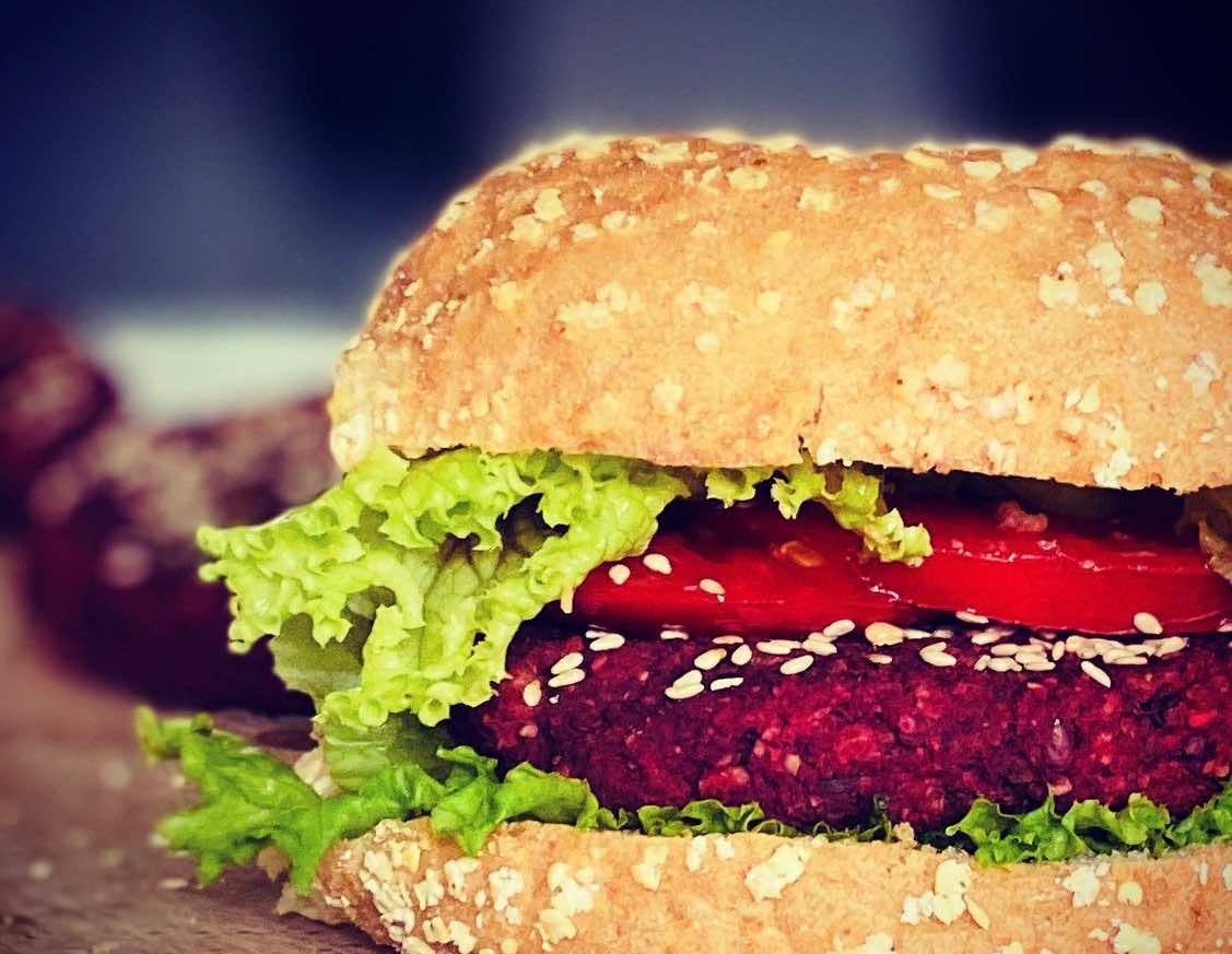 Pyszne roślinne burgery z buraków i białej fasoli z kremowym sosem aioli.