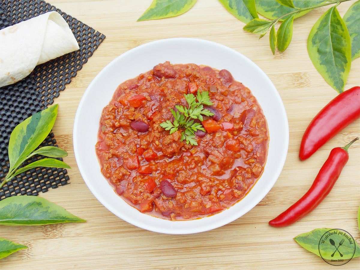 U nas też jest dziś gorąco – gęste i rozgrzewające chili con carne, pełne smaku i aromatu. Jego pochodzenie budzi wiele sporów, gdyż spore grono osób twierdzi, że jest to typowe danie meksykańskie. Chili con carne zarejestrowane jest jako oficjalna potrawa stanu Teksas i stanowi tym samym jeden z elementów kuchni Tex-Mex. Oczywiście jego korzenie wywodzą się z Meksyku, gdyż należy pamiętać że Teksas był kiedyś jego częścią. Bez względu na swoje pochodzenie jest to wspaniałe danie, idealne na jesienno – zimowe wieczory.