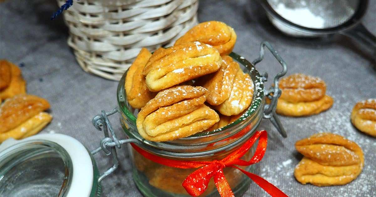 Kruche ciasteczka twarogowo-maślane o kształcie przypominającym gęsie łapki. Są banalnie proste i tanie w przygotowaniu. Składają się z 5 składników, które znajdziemy prawie w każdej kuchni. Przed upieczeniem każde ciasteczko można obtoczyć w cukrze lub (tak jak u mnie) oprószyć je cukrem pudrem po upieczeniu.