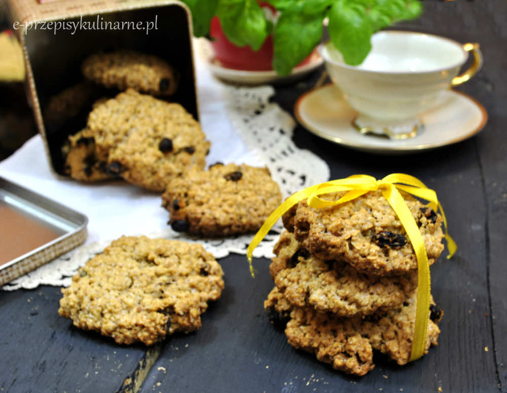 Przepis na pyszne i błyskawiczne w wykonaniu ciasteczka z płatkami owsianymi, rodzynkami i cynamonem.
