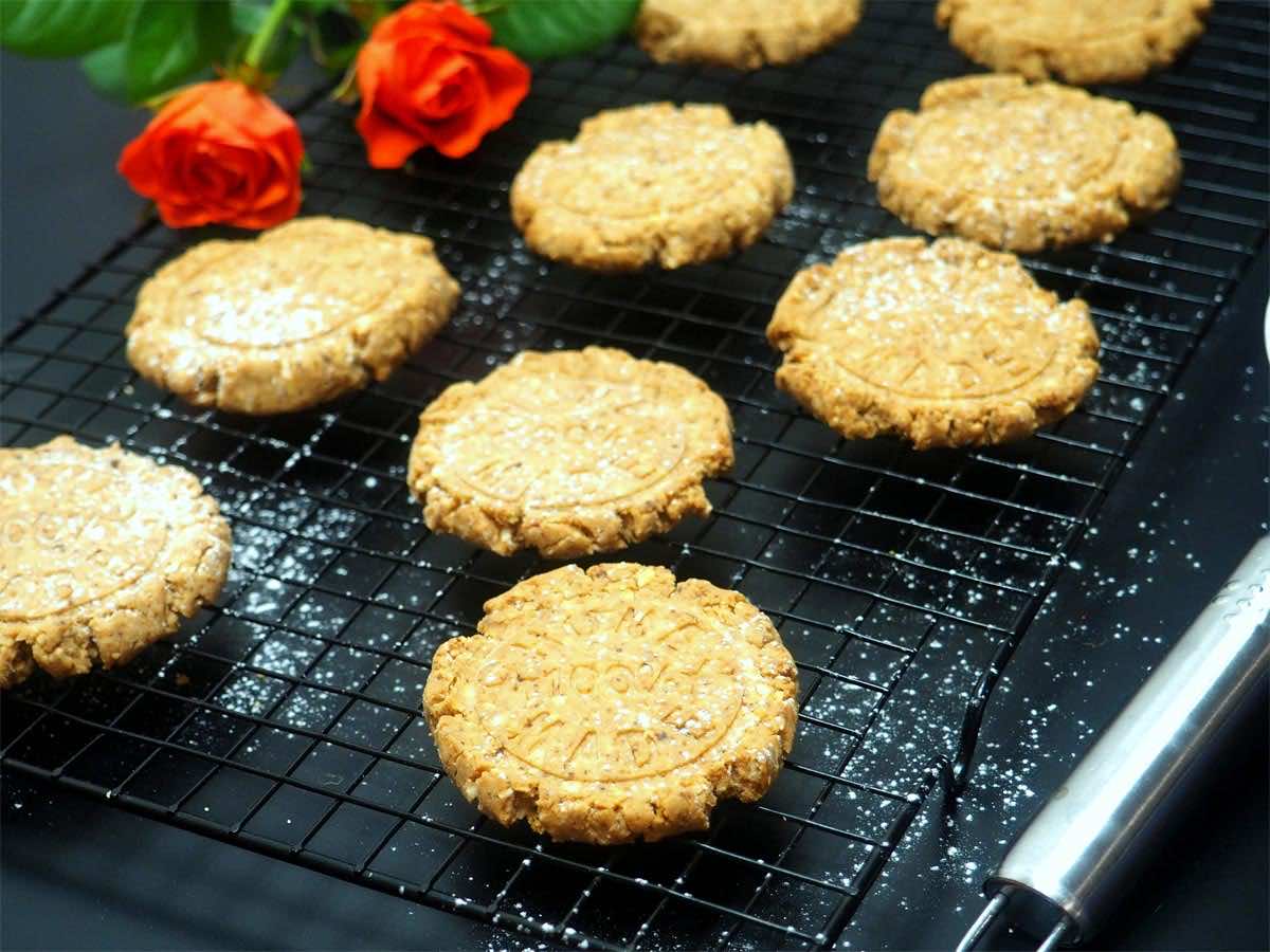 Bezglutenowe, kruche ciasteczka z dodatkiem gorzkiej czekolady oraz wiórek kokosowych, bez dodatku cukru.