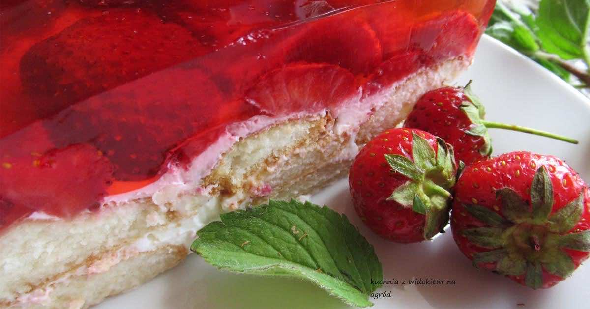 Ciasto bez pieczenia z truskawkami i galaretką.