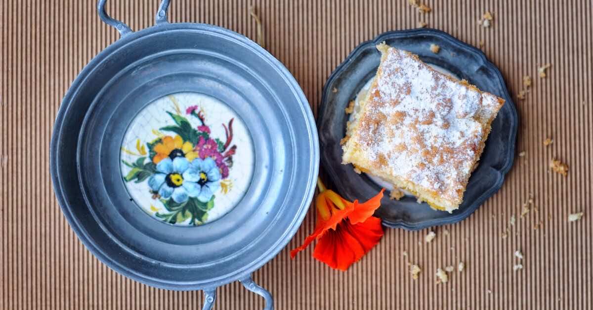 Ciasto budyniowe z brzoskwiniami.