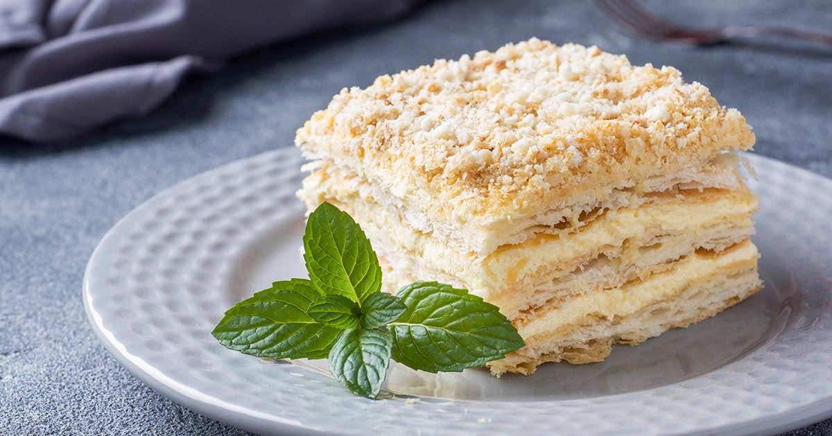 Ciasto Millefuille to bardzo popularny francuski przepis – dosłownie oznacza ono tysiąc płatków. Bardziej znane będzie Wam pod nazwą napoleonka. Trzy płaty ciasta francuskiego przełożone kremem budyniowym. Pycha :)