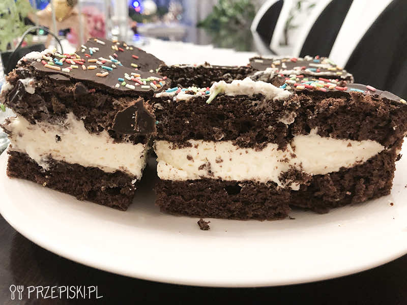 Ciasto mleczna kanapka z puszystym kremem i kakaowym biszkoptem to idealny deser dla dzieci, jak i dorosłych. Jest bardzo lekkie, wilgotne i delikatne, wręcz rozpływa się w ustach.