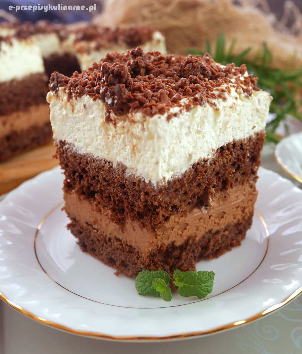 Ciasto Przysmak Sułtana z masą truflową i bitą śmietaną jest niezwykle pyszne i bardzo ładnie prezentuje się na stole.
