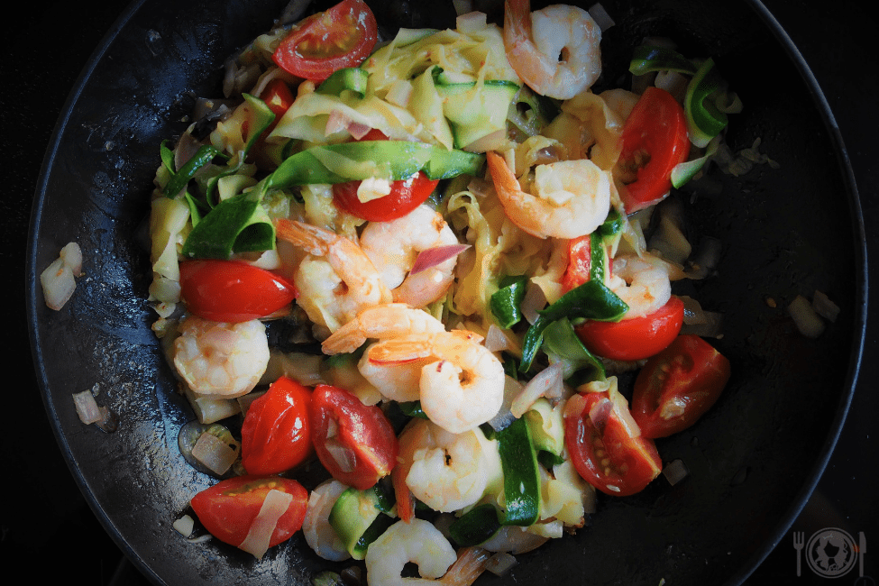 Cukiniowe tagliatelle z krewetkami i pomidorkami (Paleo, LowCarb)