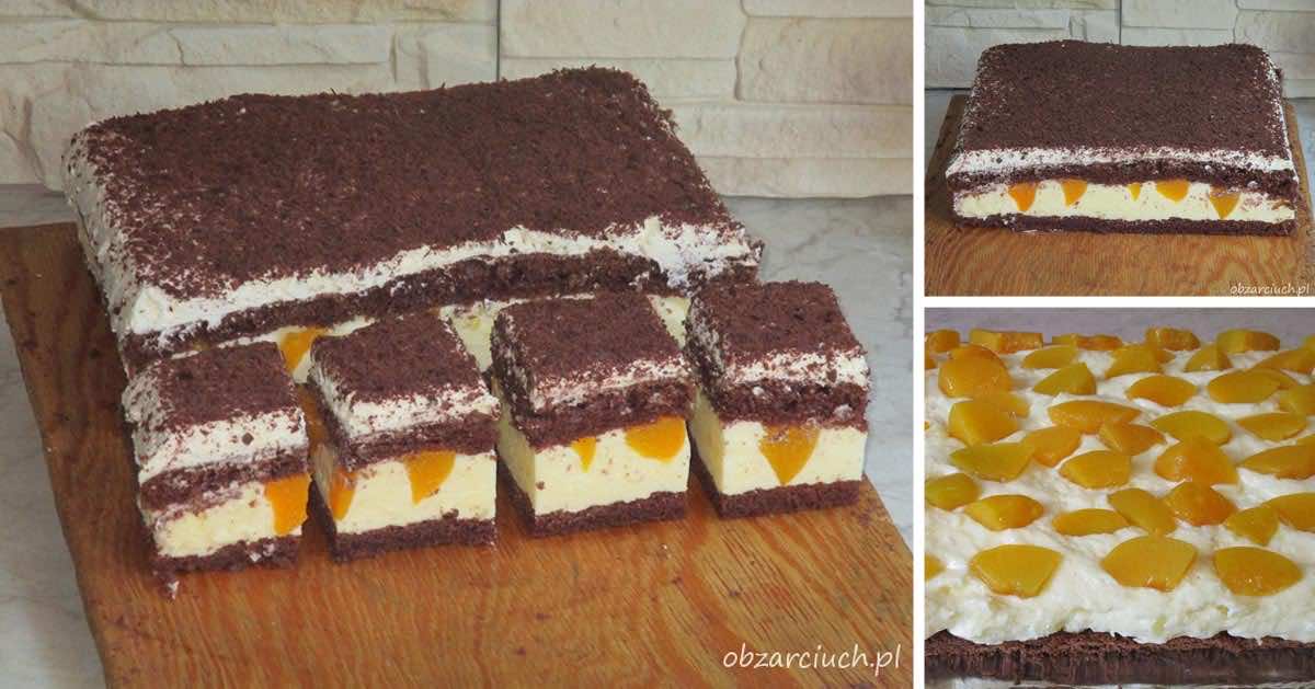 Wielowarstwowy przekładaniec z lekko kwaskowatą masą cytrynową, delikatną masą śmietankową i brzoskwiniami. Idealne ciasto na wszelkiego rodzaju uroczystości rodzinne i święta.