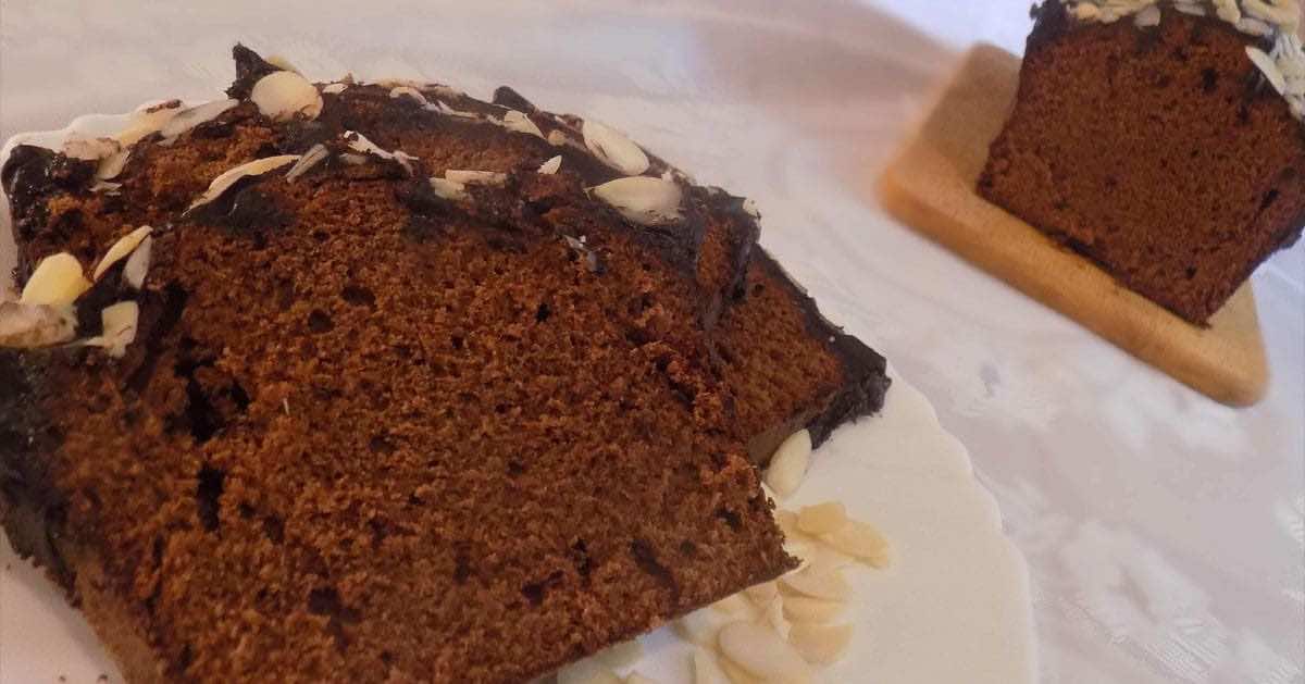 Proste i szybkie w przygotowaniu ciasto czekoladowe. Wilgotne w środku, całość oblane polewą czekoladową i posypane prażonymi płatkami migdałowymi.