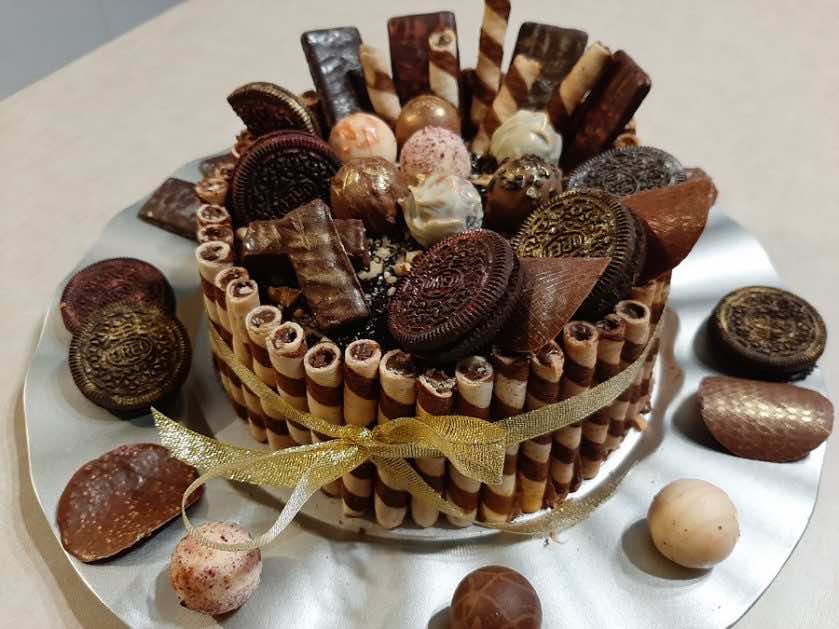 Czekoladowo-truflowy tort z orzechami, solonym karmelem i kremem waniliowym