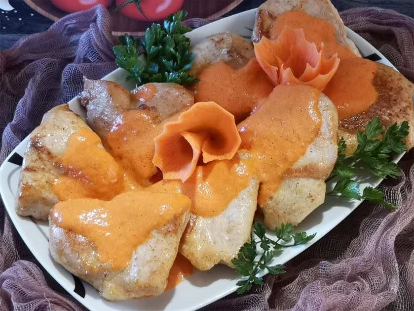 - Następnie miksujemy warzywa i polewamy sosem mięso