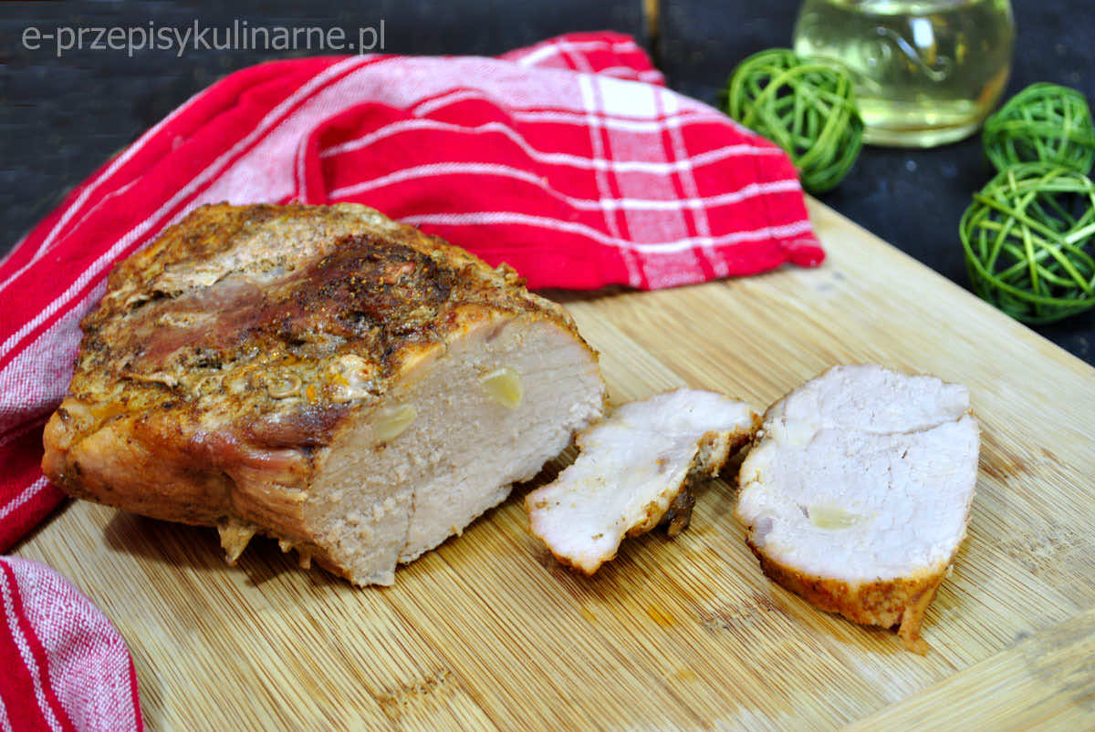 Pyszna pieczeń z mięsa wieprzowego, którą można podać zarówno na ciepło do obiadu, jak i na zimno na kanapki.