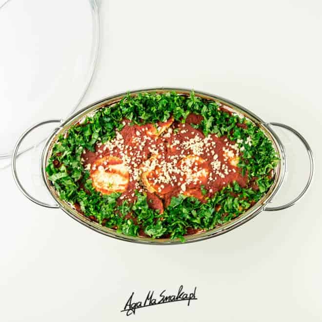 Zapiekanka makaronowa z tofu w naczyniu żaroodpornym