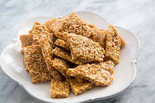 Jak nazwa wskazuje, jest w nich sezam. Jednak producenci stosują różne receptury. Niektórzy suche ziarna sezamowe „sklejają” karmelem, inni syropem glukozowym i cukrem, a jeszcze inni stosują trochę miodu.