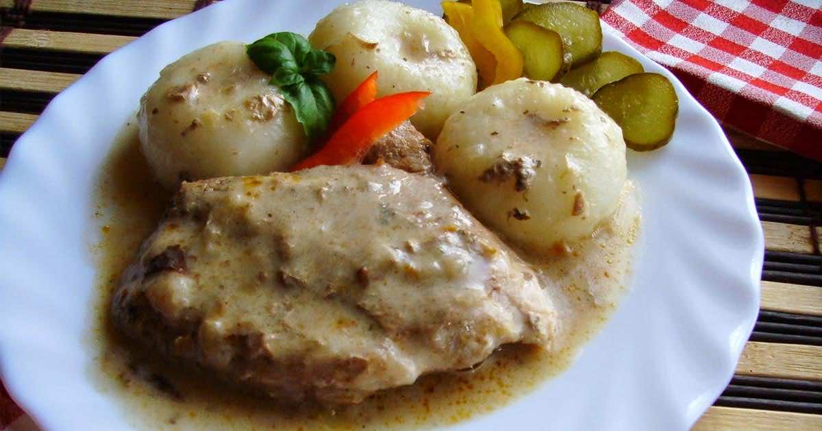Duszona obiadowa łopatka wieprzowa. Pieczeń w aksamitnym sosie z piekarnika.