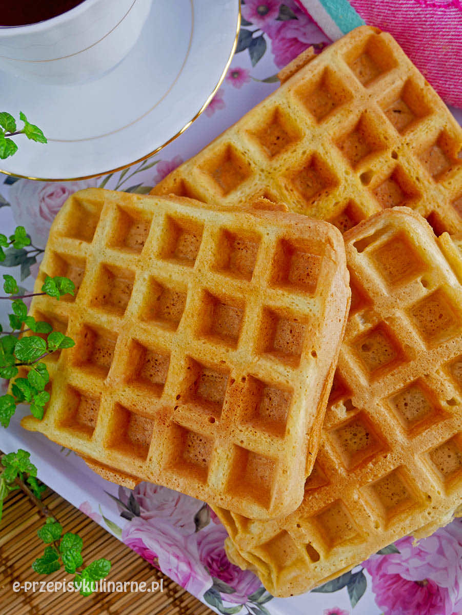 Gofry domowe, które smakują jak te z budki. Są lekkie, puszyste i chrupiące. Można podać je z ulubionymi dodatkami: bitą śmietaną, dżemem, owocami czy kremem czekoladowym albo tylko obsypane cukrem pudrem.