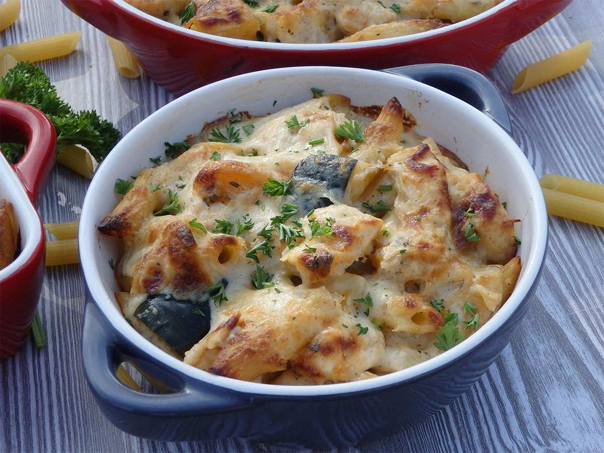 Pyszne i pożywne zapiekanki z kawałkami pieczonej dyni i cukinii, kurczakiem i makaronem. Zapiekanki przygotowałam w małych naczyniach żaroodpornych aby każdy miał swoją porcję ale można zrobić jedną w dużym naczyniu.