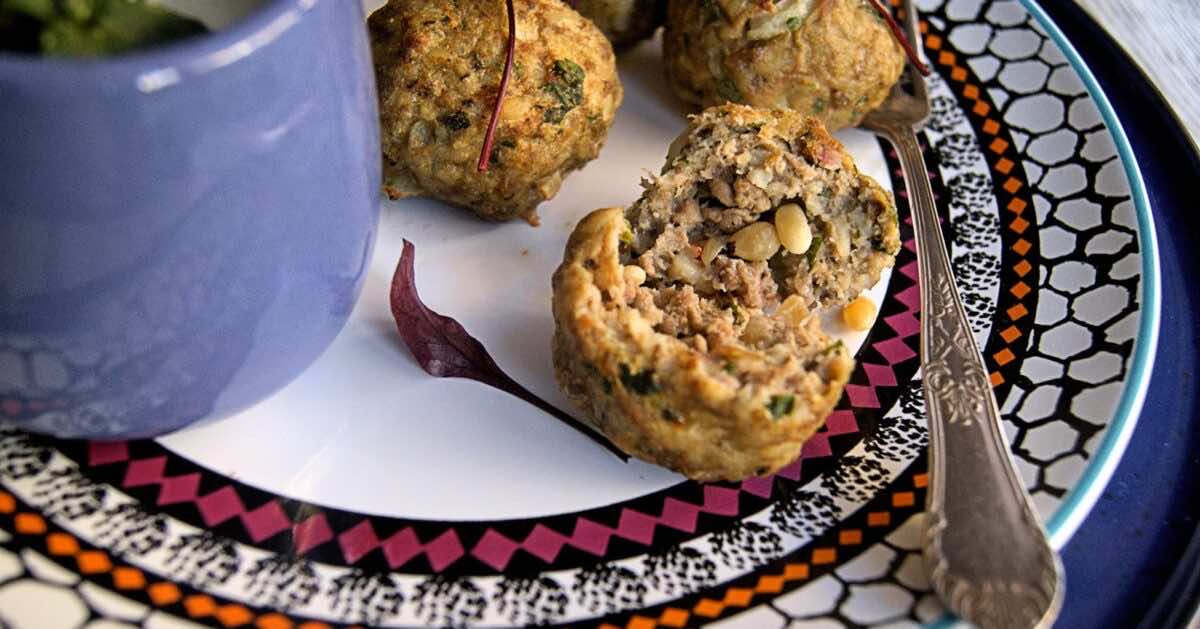 Kibbeh po polsku to mięso mielone wieprzowo-wołowe, makaron 5 jajeczny w kształcie ryżu, aromatyczne przyprawy, świeża mięta i natka pietruszki oraz orzeszki piniowe lub słonecznik do pikantnego farszu. Zamiast smażenia krótkie pieczenie w piekarniku. Świetnie smakuje z sosami na bazie gęstego jogurtu. Prosta i aromatyczna potrawa, która z powodzeniem zastąpi mielonego.