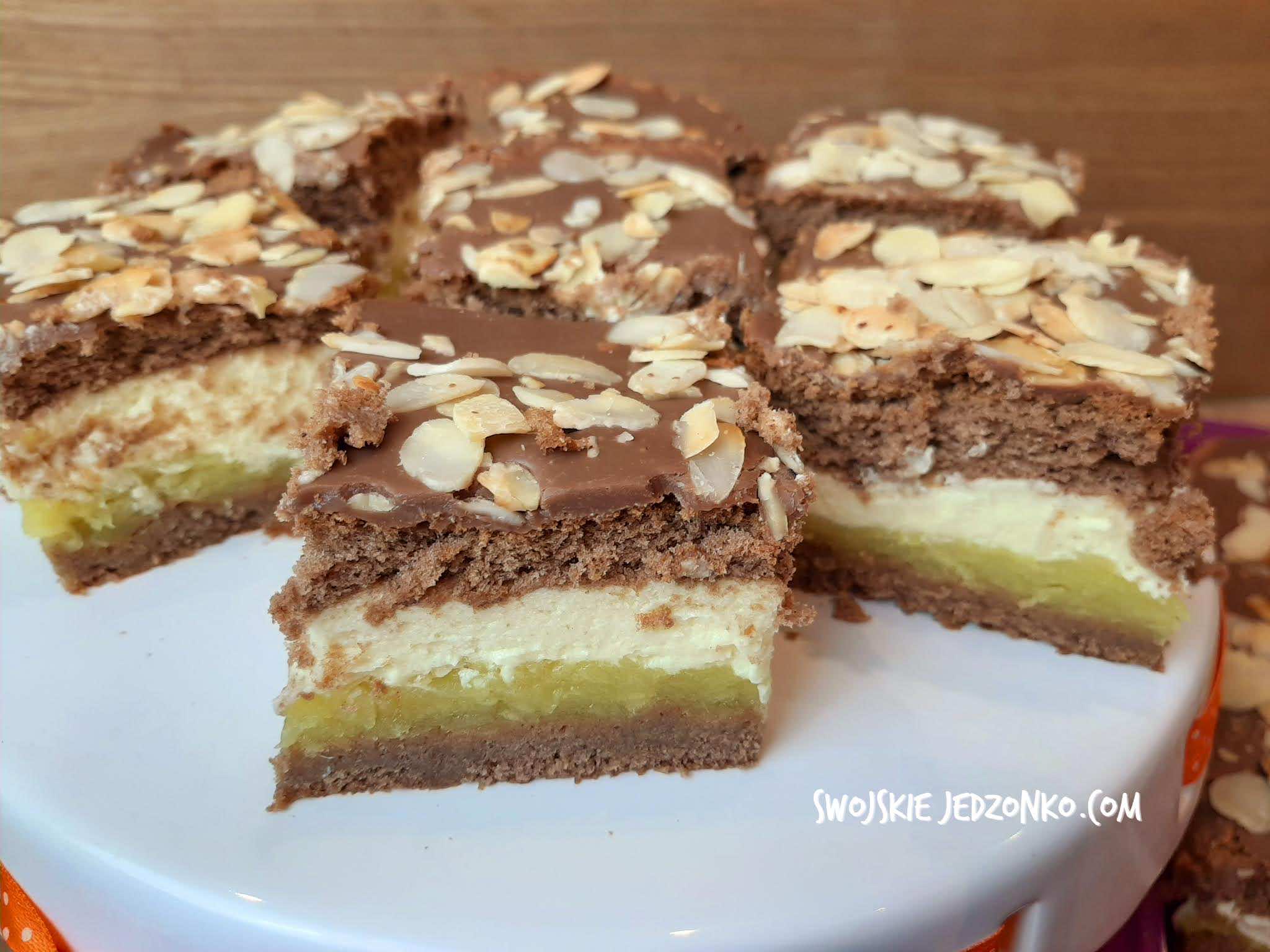 Pyszne, delikatne, nie za słodkie ciasto z jabłkową i budyniową masą, do tego kakaowy biszkopt i czekoladowa polew. Pychotka. Idealne na każdą okazję, imieniny, święta lub po prostu do popołudniowej kawy. Polecam gorąco.