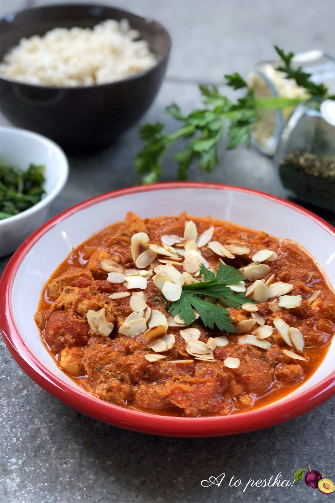 Pyszne, soczyste mięso z kurczaka w rewelacyjnie aromatycznym sosie na bazie pomidorów i cebuli z dodatkiem orientalnych przypraw z pewnością przypadnie do gustu wszystkim amatorom (nie tylko) indyjskich smaków.