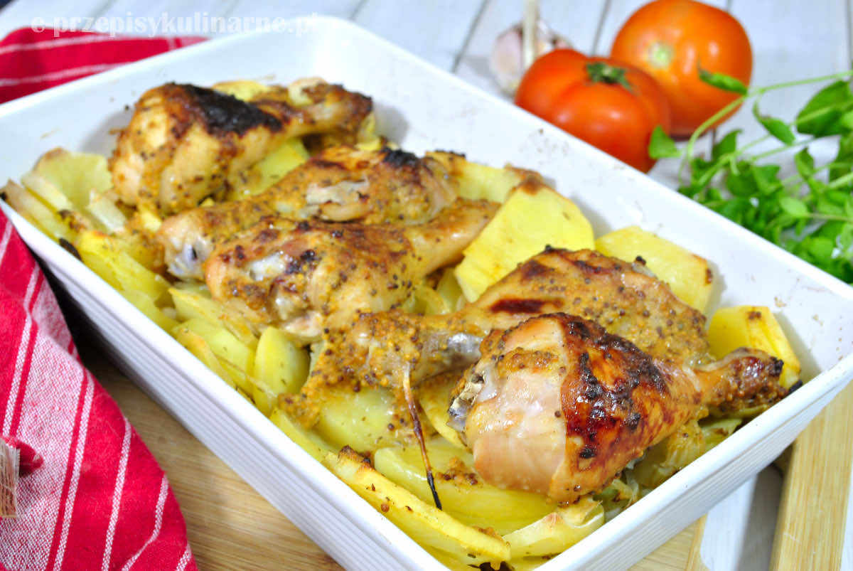 Kurczak w musztardzie i miodzie pieczony z ziemniakami i cebulą to sprawdzony przepis na pyszny i szybki obiad dla całej rodziny. Jest to danie bardzo proste do przygotowania, a jeśli zamarynujemy kurczaka dzień wcześniej, to resztę przygotujemy błyskawicznie.