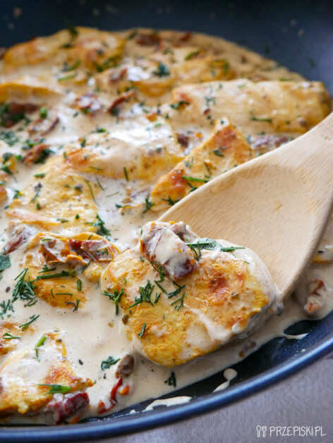 Szukacie ciekawego pomysłu na filet z kurczaka? Polecam Wam super przepis na kurczaka w sosie z suszonymi pomidorami. Mięso jest delikatne i soczyste a sam sos podkreśla jego cudowny smak. Danie jest banalnie proste w przygotowaniu i składa się z kilku ogólnodostępnych składników.