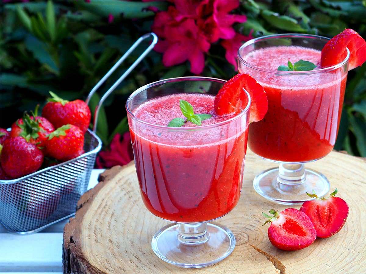 Lemoniada z owoców sezonowych – truskawek z dodatkiem świeżych listków mięty, w dwóch wersjach – na wodzie oraz na napoju typu sprite.