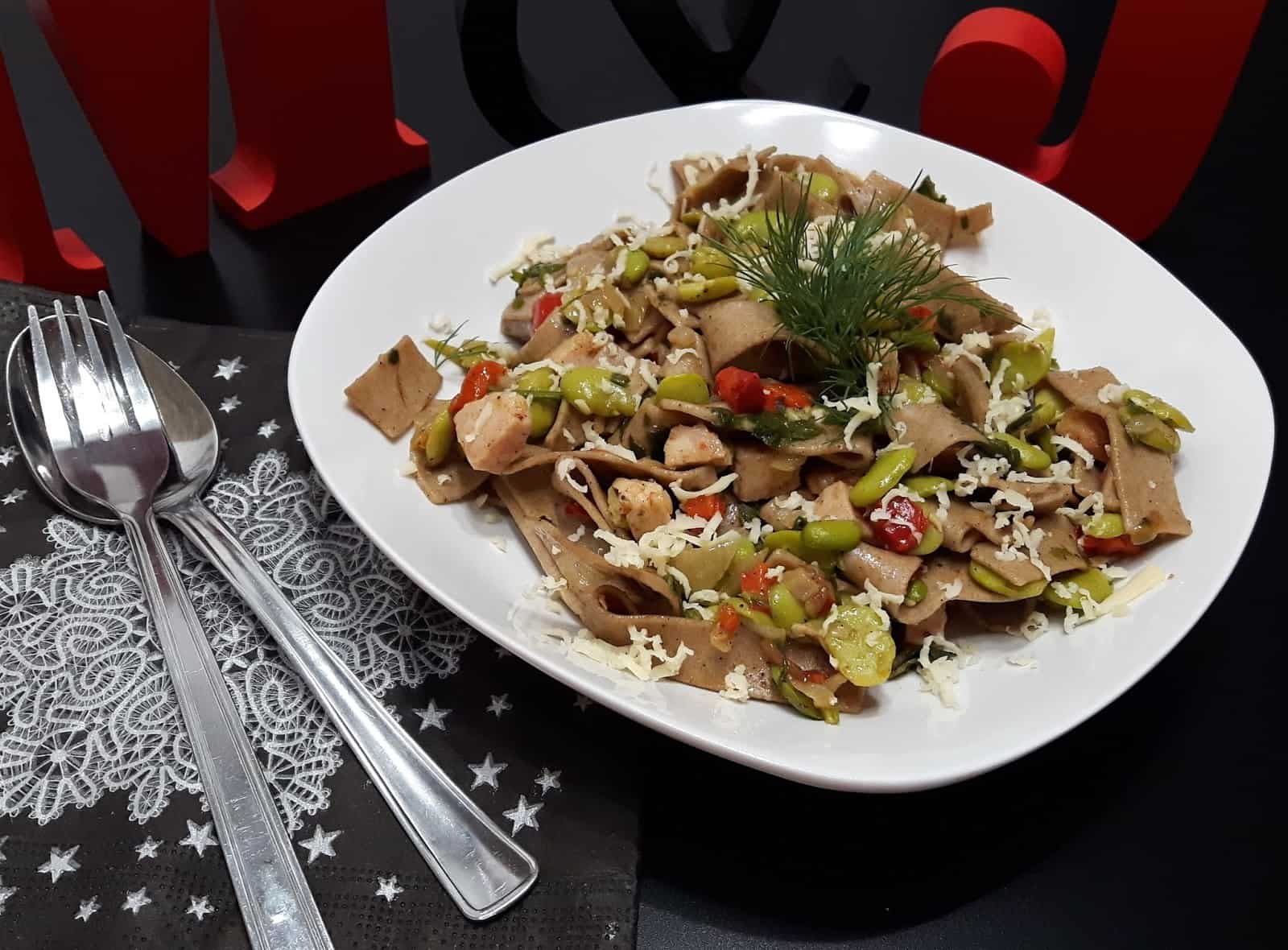 Pomysł na szybki obiad! Makaron z kiełbasą i bobem, smacznie i na syto :)