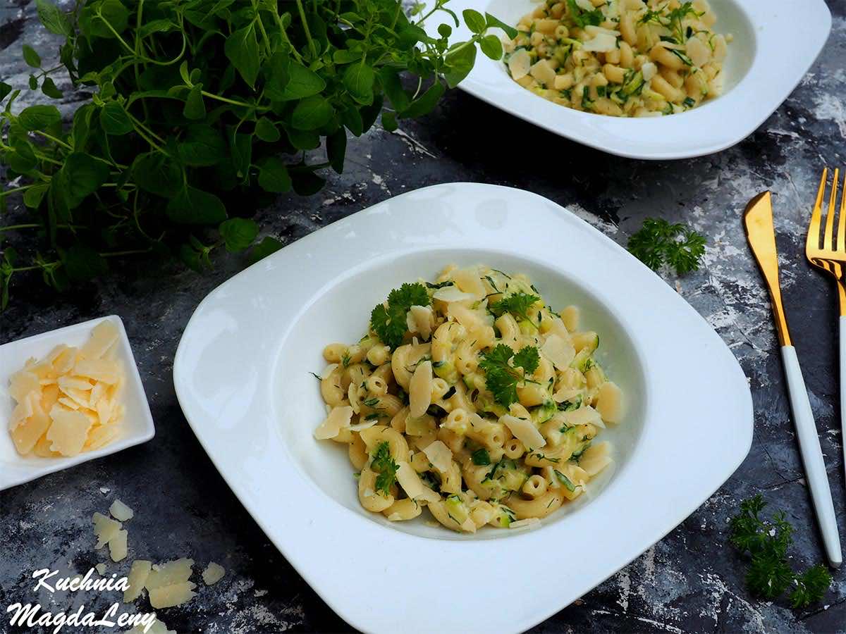 Danie wegetariańskie – makaron w sosie cukiniowym z mascarpone.