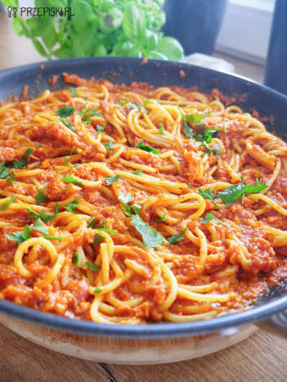 Przepis na makaron z konserwą jest banalnie prosty. Jej smak z dodatkiem sosu pomidorowego i makaronu komponuje się idealnie.