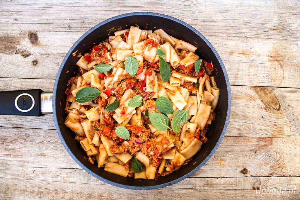 Makaron z tuńczykiem, papryką i pomidorami to świetny pomysł na lekki obiad czy kolację. Danie jest bardzo smaczne i szybkie, zrobicie je w zaledwie 30 minut. Gorąco polecam :)