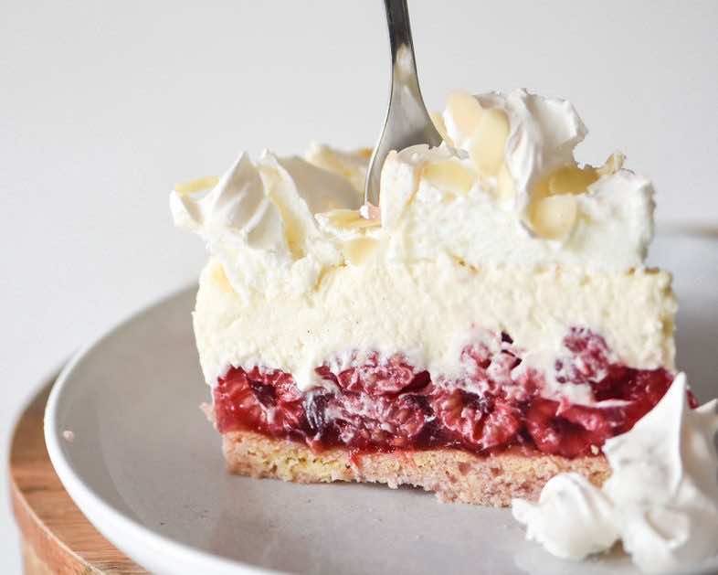 Malinowa Chmurka to ciasto z kilkoma warstwami. Pierwsza to kruchy spód na podstawie masła i żółtek, następna to galaretka malinowa z świeżymi owocami, później mamy krem waniliowy z mascarpone i śmietanką a na samej górze jest beza. No i czego tu nie lubić :)