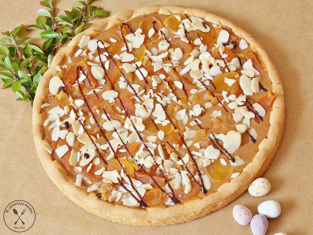 Mimo że od dawna uważamy mazurka za nasz narodowy wypiek, to w rzeczywistości przepis na to ciasto przywędrował do nas prawdopodobnie z Turcji, a w polskiej tradycji zakorzenił się na stale w XVII wieku. Jego symbolika jest ściśle powiązana z okresem Wielkiego Postu – a w zasadzie jego zakończeniem. Po czterdziestu dniach obowiązkowej wstrzemięźliwości od potraw mięsnych i słodkich wypieków, mazurek stanowił pewnego rodzaju nagrodę dla wytrwałych w wierze i postanowieniu chrześcijan. Jest on absolutnym niezbędnikiem na naszych stołach. Zapraszam Was na mój ulubiony mazurek kajmakowy na kruchym spodzie wzbogacony o suszone morele i chrupiące płatki migdałów.
