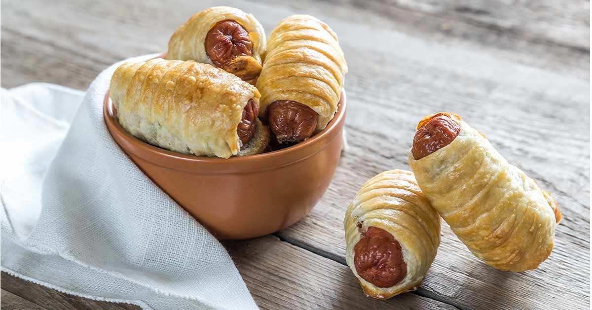 Mega szybka przekąska na imprezę – kiełbaski w cieście francuskim. Przygotowanie jest bardzo proste i szybkie bo jedyne czego potrzebujemy to trzy składniki.