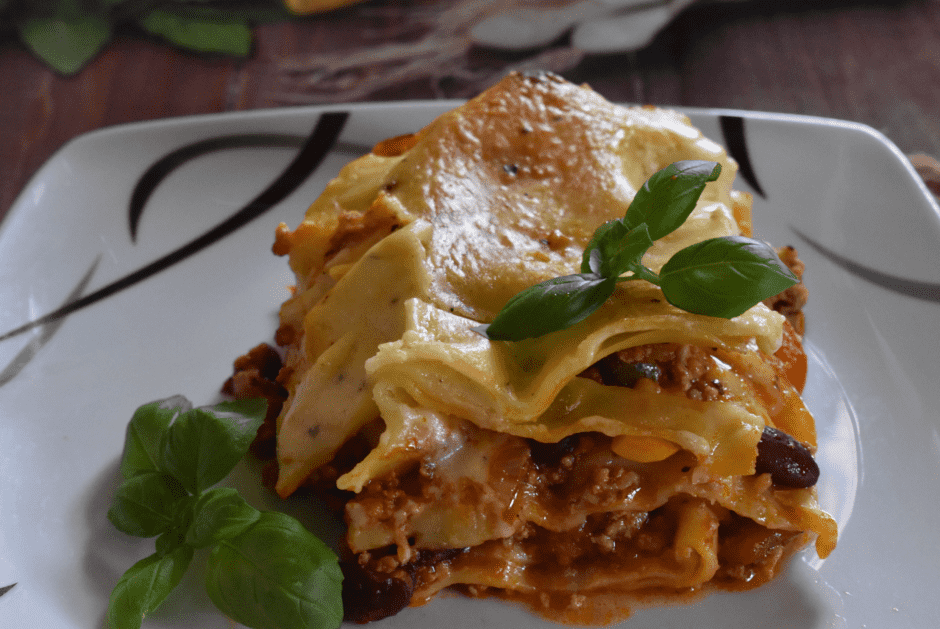 Inna niż wszystkie lazania, przekładana mięsem, różnym warzywami z dodatkiem sosu pomidorowego oraz beszamel. Zapiekankę pieczemy w piekarniku.