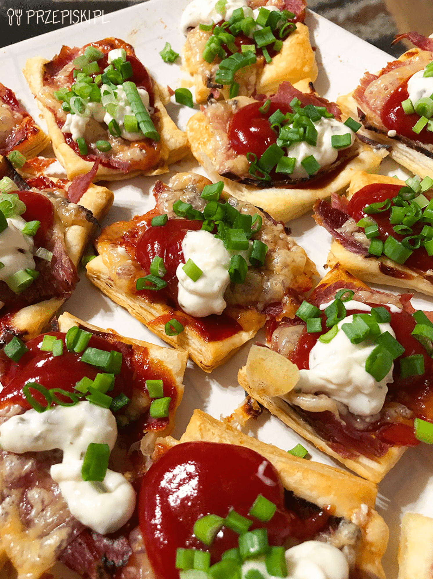 Mini zapiekanki z ciasta francuskiego to bardzo szybka i smaczna przekąska, która sprawdzi się na każdą okazję. Nie ważne, czy jest to impreza, spotkanie z przyjaciółmi czy urodzinowe przyjęcia.