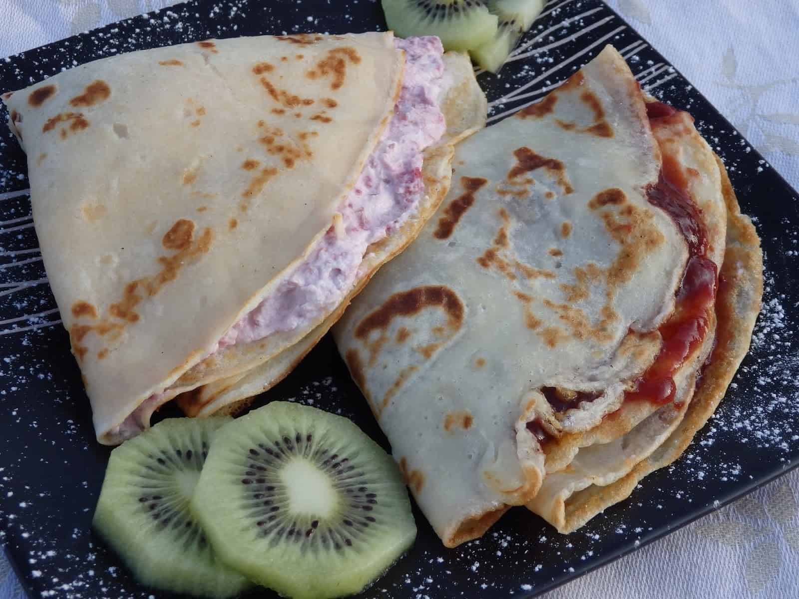 Zrobiłam masło i zostało mi sporo maślanki a nie miałam na nią pomysłu więc zrobiłam naleśniki na słodko. Naleśniki z maślanki są równie pyszne jak te na mleku, w sumie jak dla mnie nie ma wielkiej różnicy poza tym, że są leciutko kwaskowe w smaku. Ciasto zrobiłam rzadsze więc naleśniki wyszły mi cieniutkie. Podałam je z serkiem oraz dżemem.