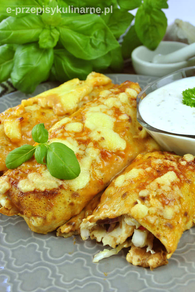 Naleśniki z gyrosem zapiekane w piekarniku i podane z sosem czosnkowym to bardzo pyszne i sycące danie, które możemy podać na obiad lub jako przekąskę na imprezie. Na pewno zarówno domownicy, jak i goście będą zachwyceni.