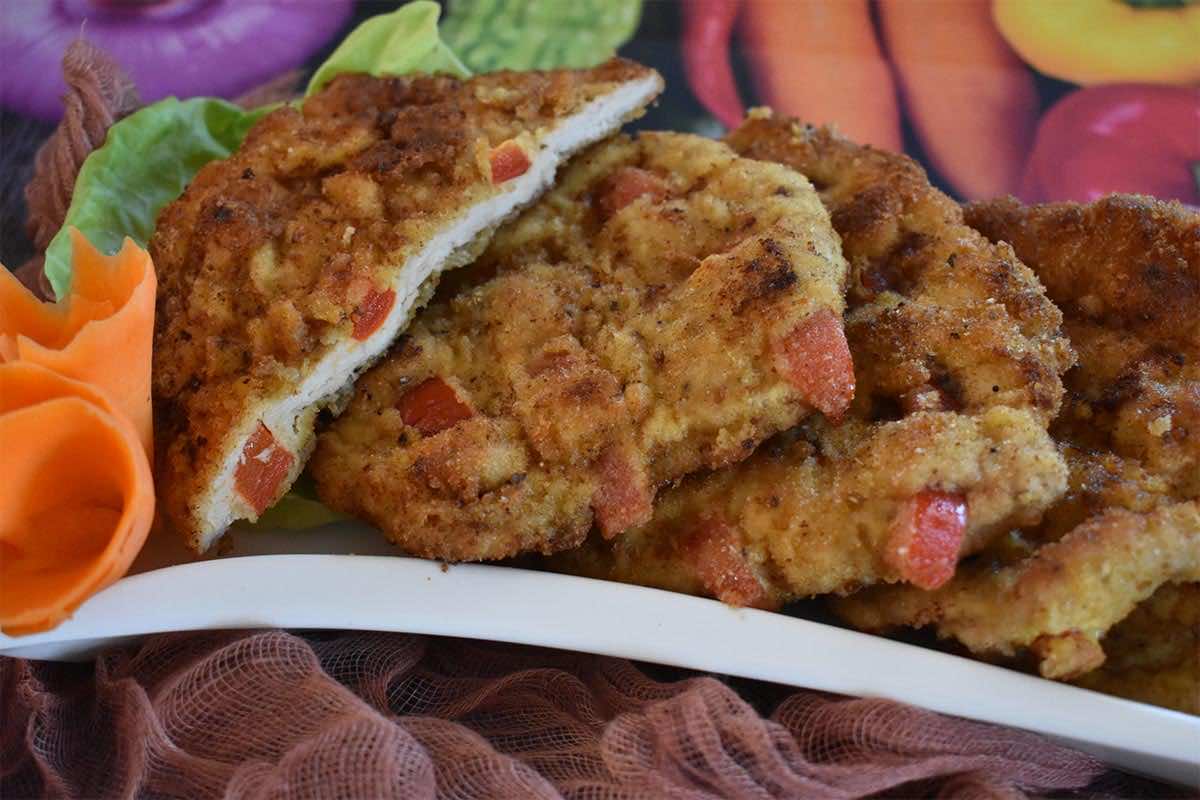 - Doprawiamy solą oraz pieprzem, panierujemy w roztrzepanym widelcem jajku oraz w bułce tartej.