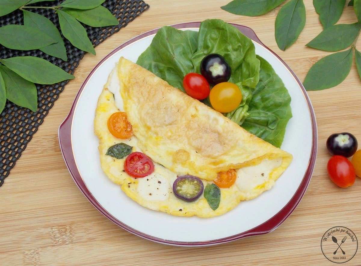 Omlet na śniadanie? Czemu nie! Wystarczy kilka prostych składników i pożywne, zdrowe śniadanie gotowe. Przedstawiam Wam kolorowe fit śniadanie inspirowane włoską kuchnią i znaną wszystkim sałatką Caprese. Świeże i pożywne jajka, kilka skąpanych w letnim słońcu pomidorków, śnieżnobiała mozzarella i cudownie pachnąca bazylia. Wspaniałe śniadanie w pięknych kolorach mijającego lata jak i rozpoczynającej się barwnej jesieni. Voilà!
