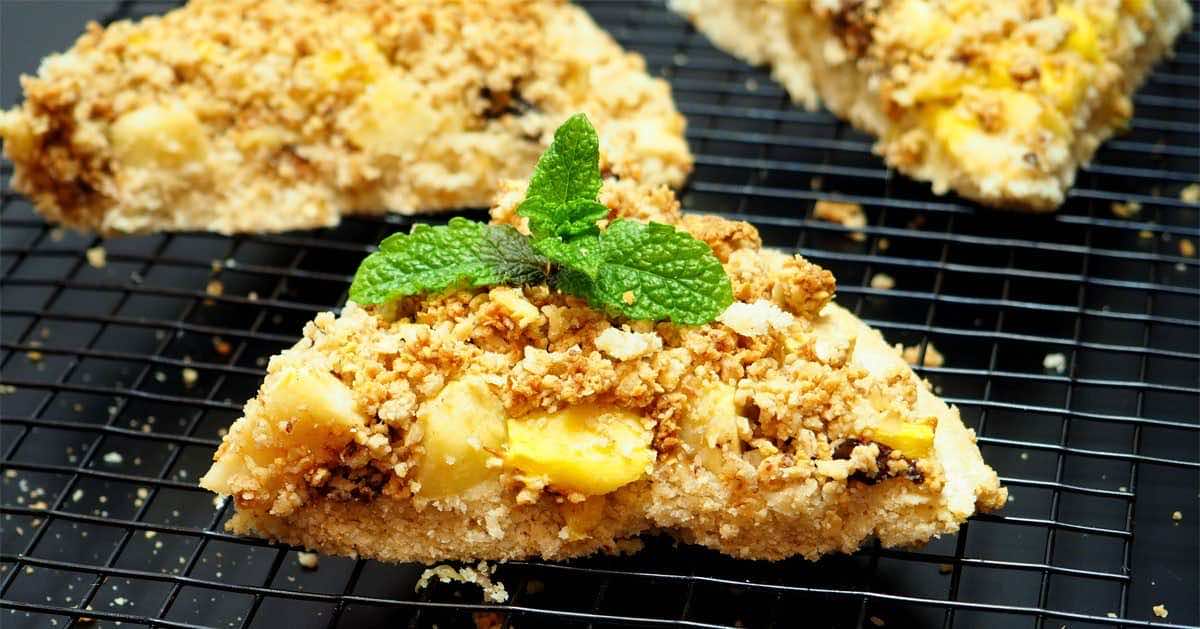 Pizza z owocami? Czemu nie! Ale nie jest to taka zwykł pizza, a bezglutenowa – z mąki ryżowej oraz owsianej. Do tego kruszonka z płatków kasztanowych, no i oczywiście owoce – u mnie: jabłka oraz mango.