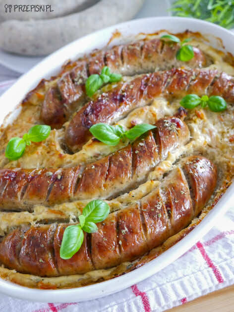 Biała kiełbasa pieczona na kiszonej kapuście to fajny pomysł na wielkanocne danie i nie tylko! Danie to ma bogaty smak…