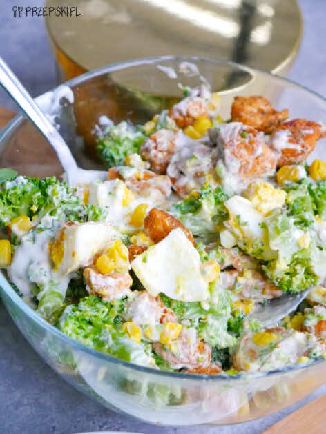 Sałatka z brokułem i sosem czosnkowym przepis